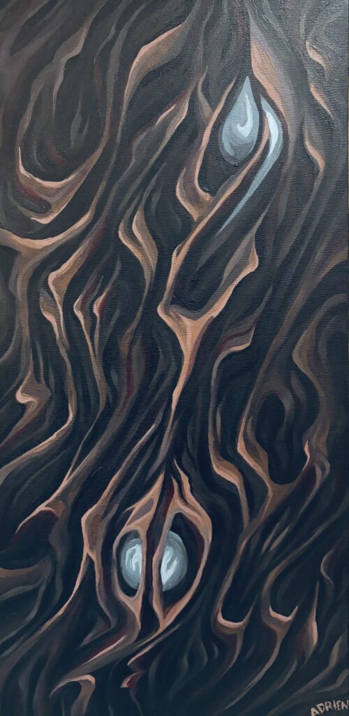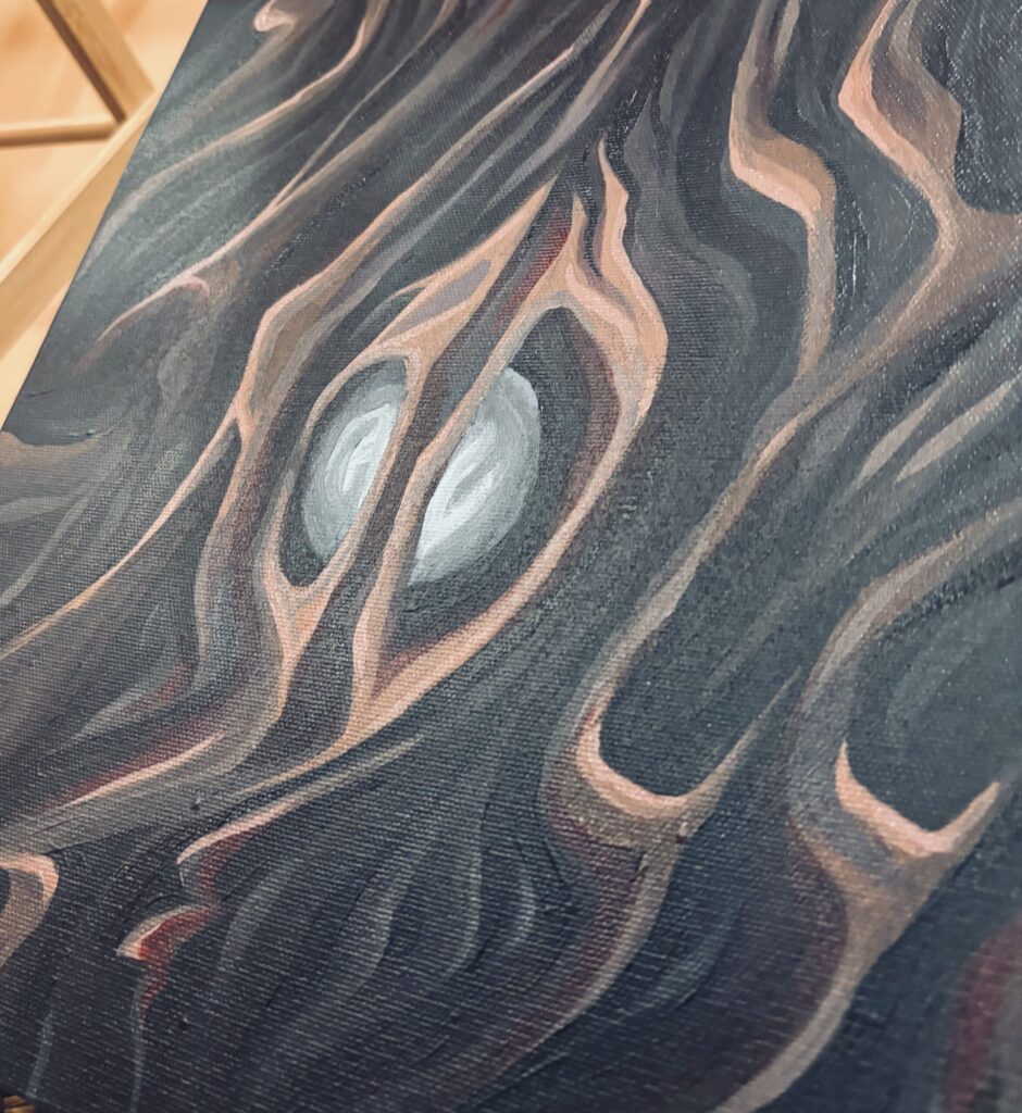 Here’s an art piece I live painted at a collaborative streamed event last summer (2025) with some excellent local musicians and AV geeks in Bellingham. I won’t give too much away about the painting other than to say I was deeply present to the fact that though I was being watched, that didn’t mean I wasn’t watching back.