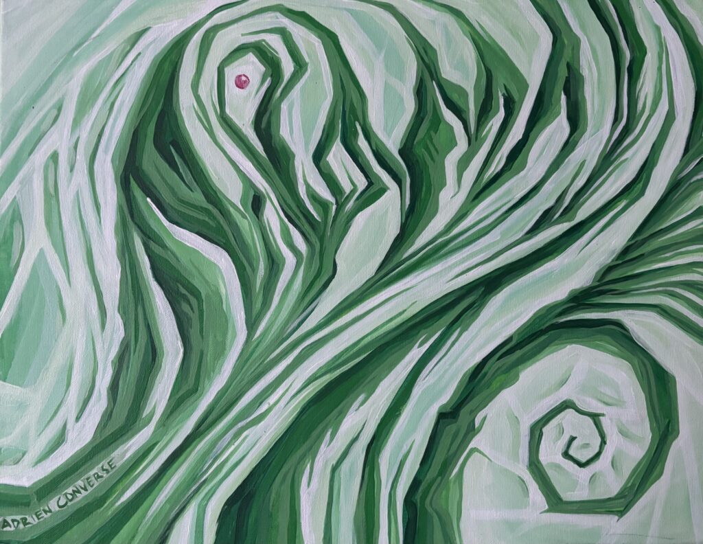 I painted this piece on St. Patty’s Day when I was living near Joshua Tree in the Mojave Desert. Spring hits different there. I feel lucky to have gotten to experience that place the way I did for the five months of my life I spent there.